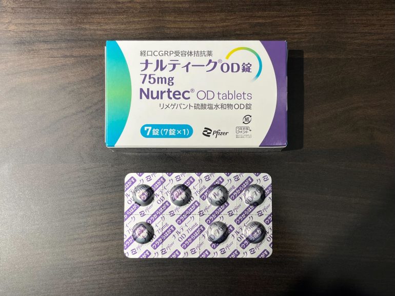 2025年9月には、「ナルティーク®(=リメゲパント)」(CGRP受容体抗体の内服薬)が承認され発売待ちです。さらに、アトゲパントも承認待ちです。ナルティークについては、予防にも発作時にも使える初の内服製剤です。